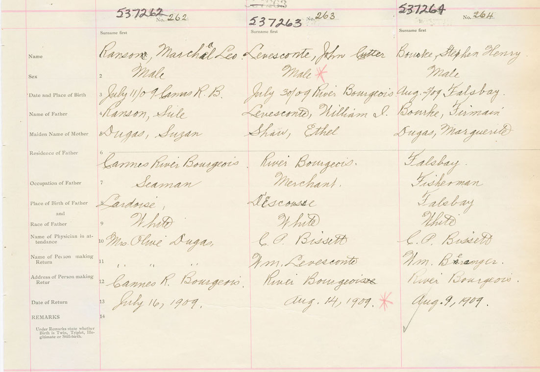 Male Birth Registration: Year: 1909 number: 53700264