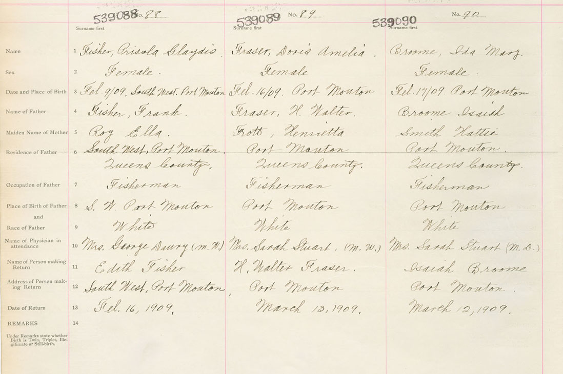 Female Birth Registration: Year: 1909 number: 53900088
