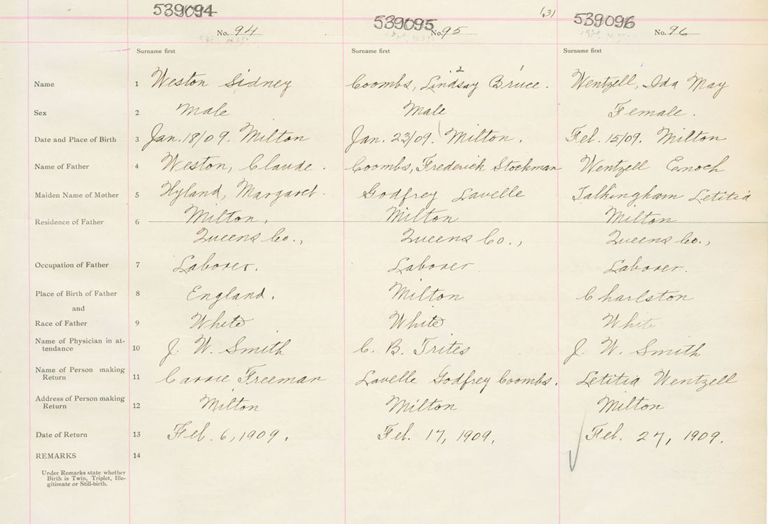 Male Birth Registration: Year: 1909 number: 53900094