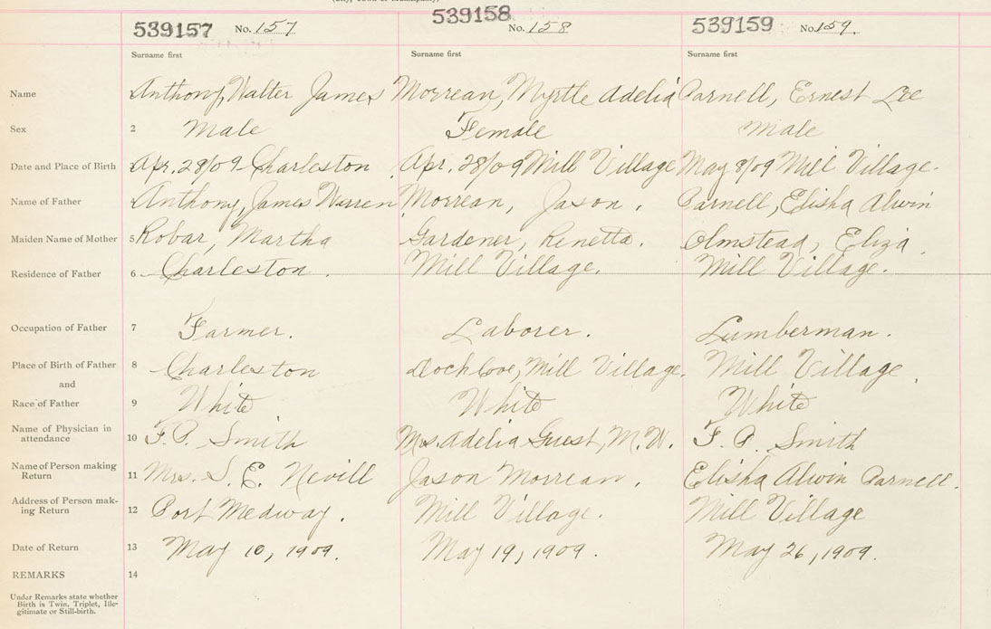 Male Birth Registration: Year: 1909 number: 53900157