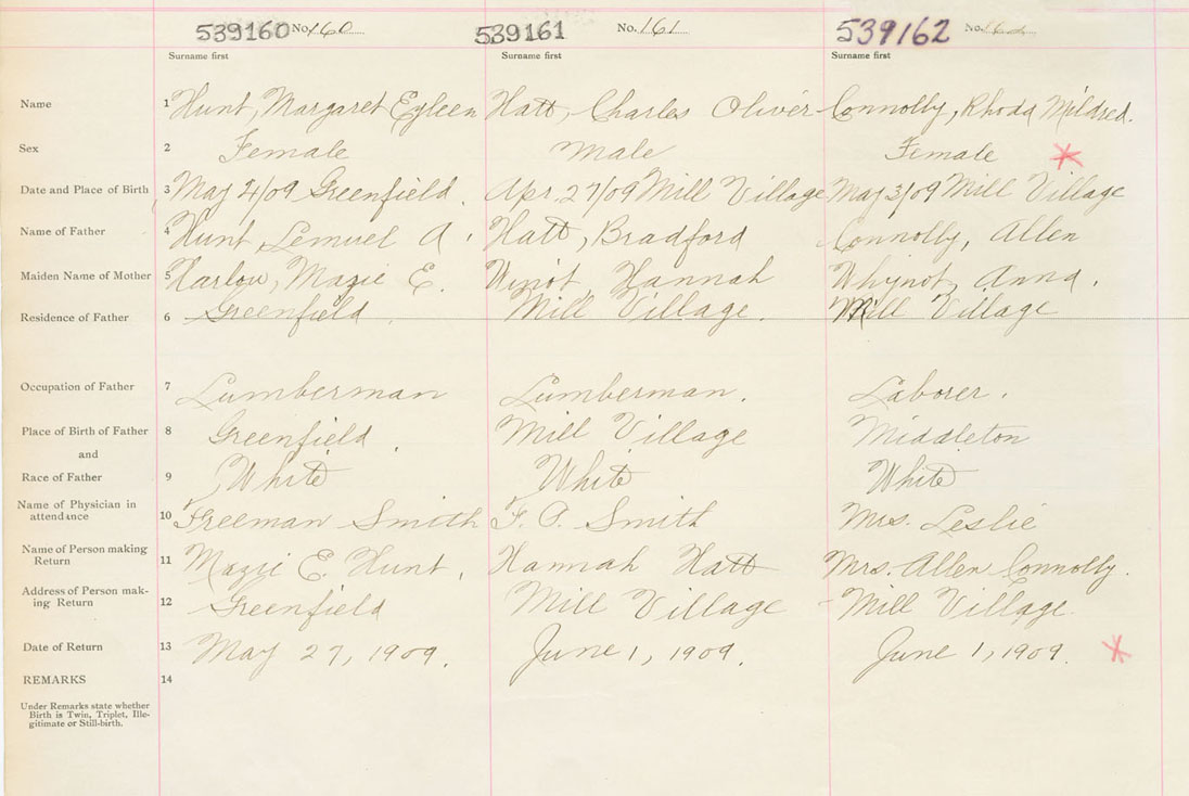 Female Birth Registration: Year: 1909 number: 53900160