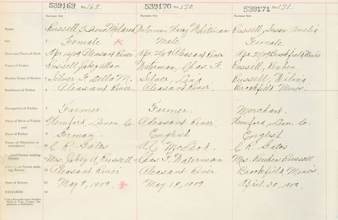 Female Birth Registration: Year: 1909 number: 53900169