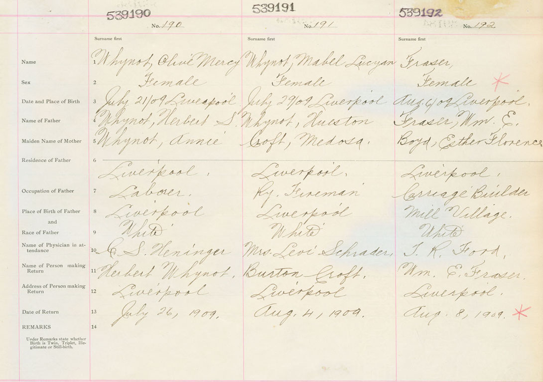 Female Birth Registration: Year: 1909 number: 53900192