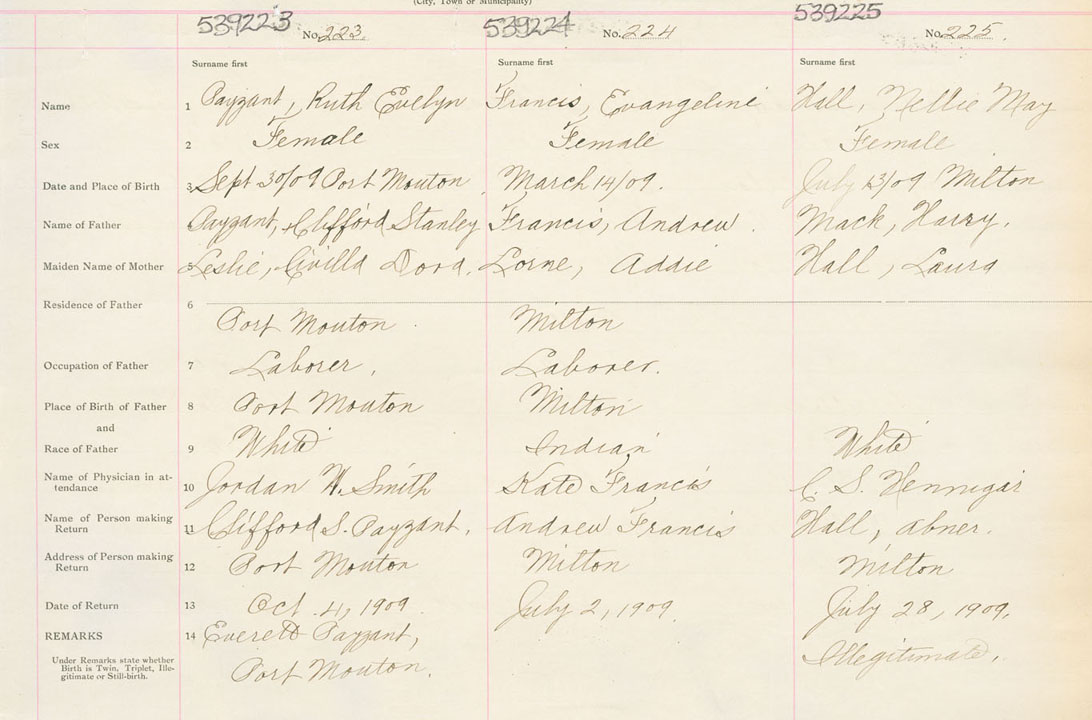 Female Birth Registration: Year: 1909 number: 53900225