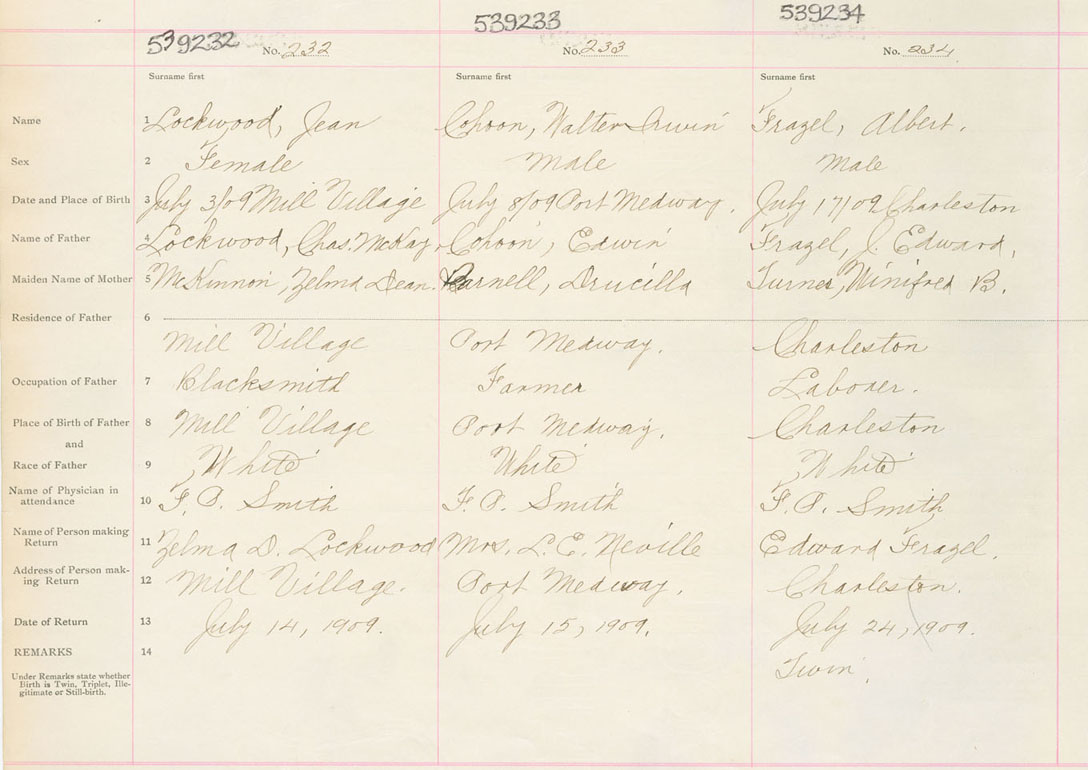 Male Birth Registration: Year: 1909 number: 53900234
