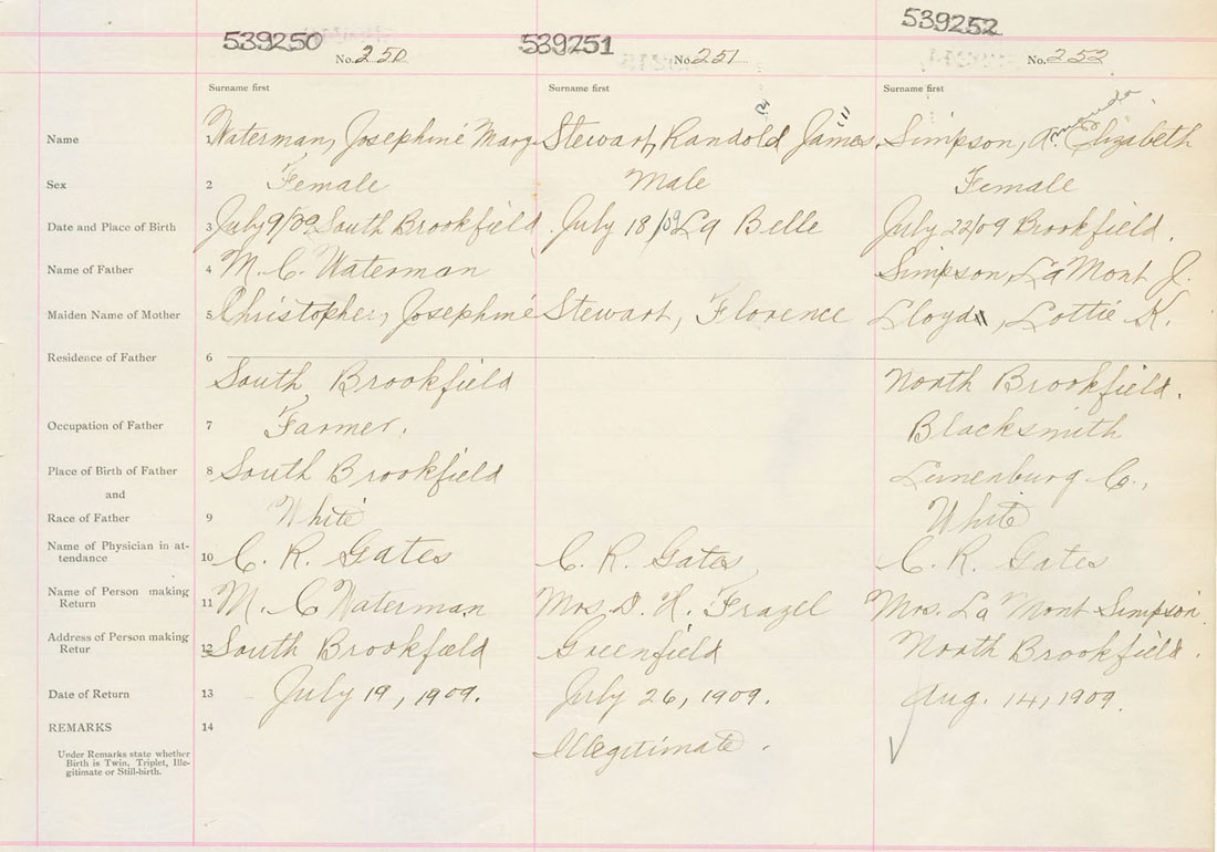 Female Birth Registration: Year: 1909 number: 53900252
