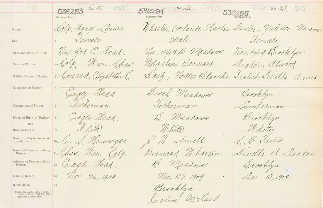 Female Birth Registration: Year: 1909 number: 53900285