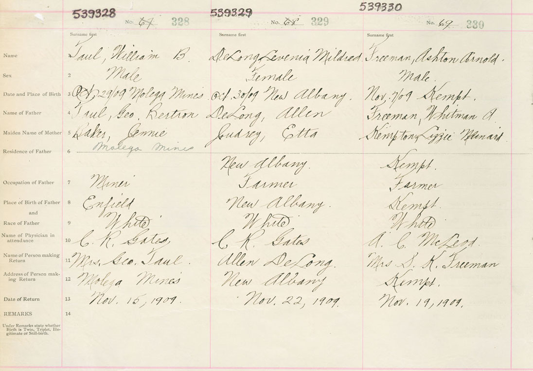 Male Birth Registration: Year: 1909 number: 53900330