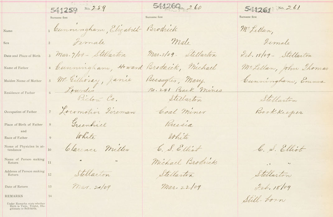 Female Birth Registration: Year: 1909 number: 54100259