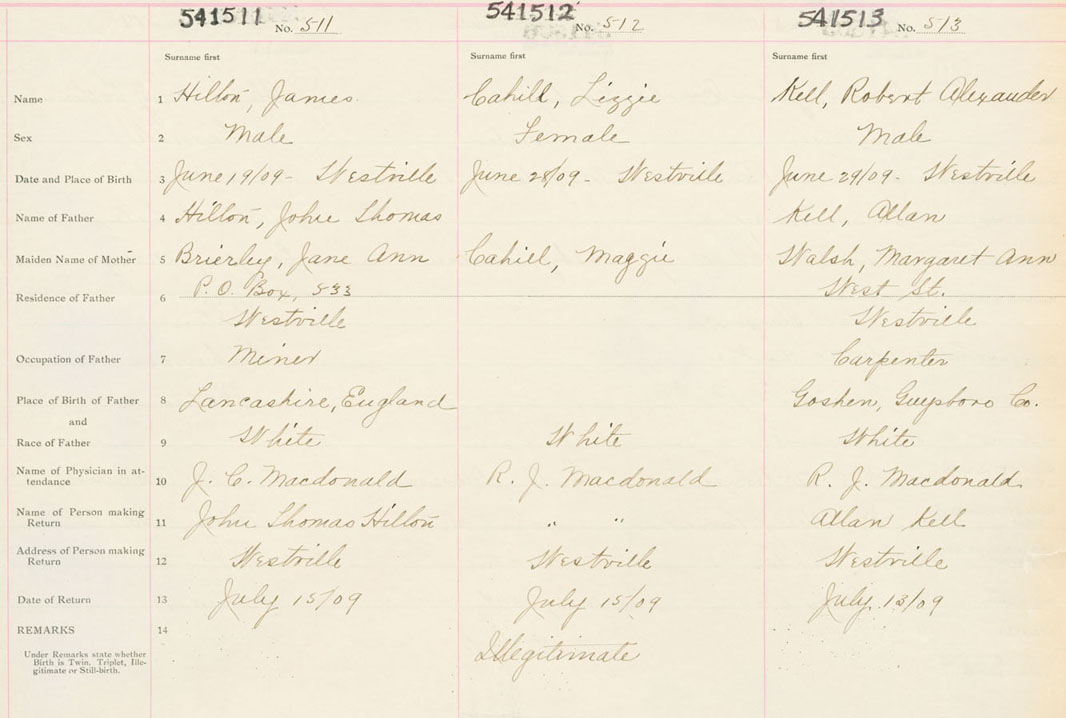 Male Birth Registration: Year: 1909 number: 54100513