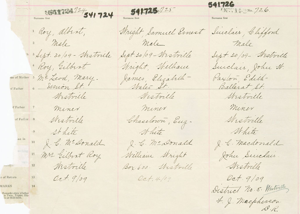 Male Birth Registration: Year: 1909 number: 54100724