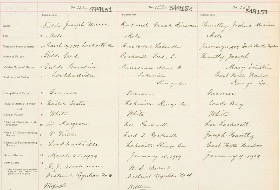 Male Birth Registration: Year: 1909 number: 54900153