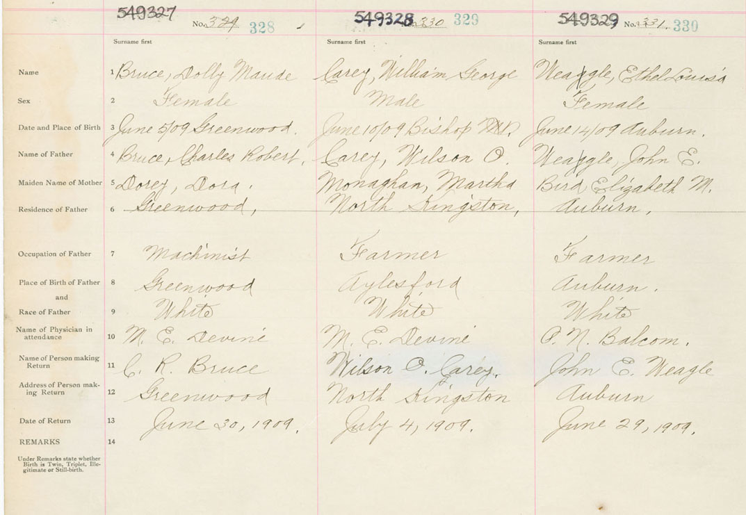 Female Birth Registration: Year: 1909 number: 54900327