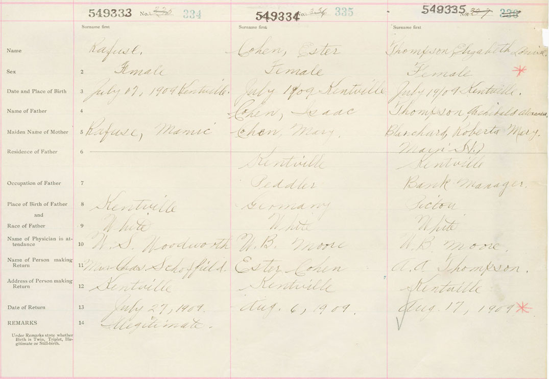 Female Birth Registration: Year: 1909 number: 54900333