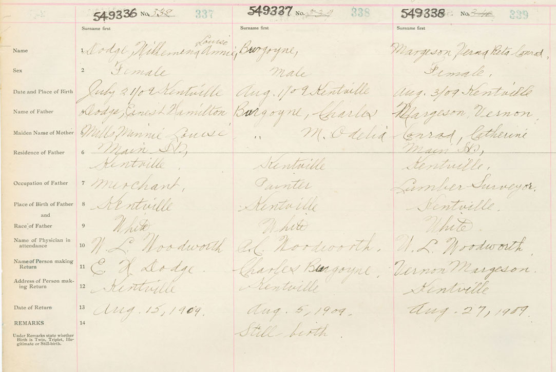 Female Birth Registration: Year: 1909 number: 54900336