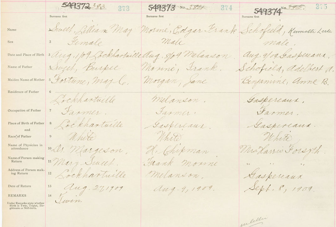 Female Birth Registration: Year: 1909 number: 54900372
