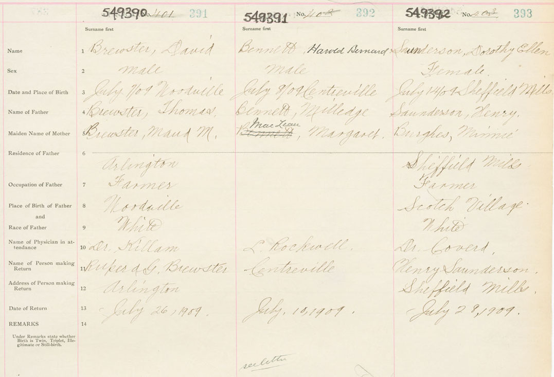 Male Birth Registration: Year: 1909 number: 54900390