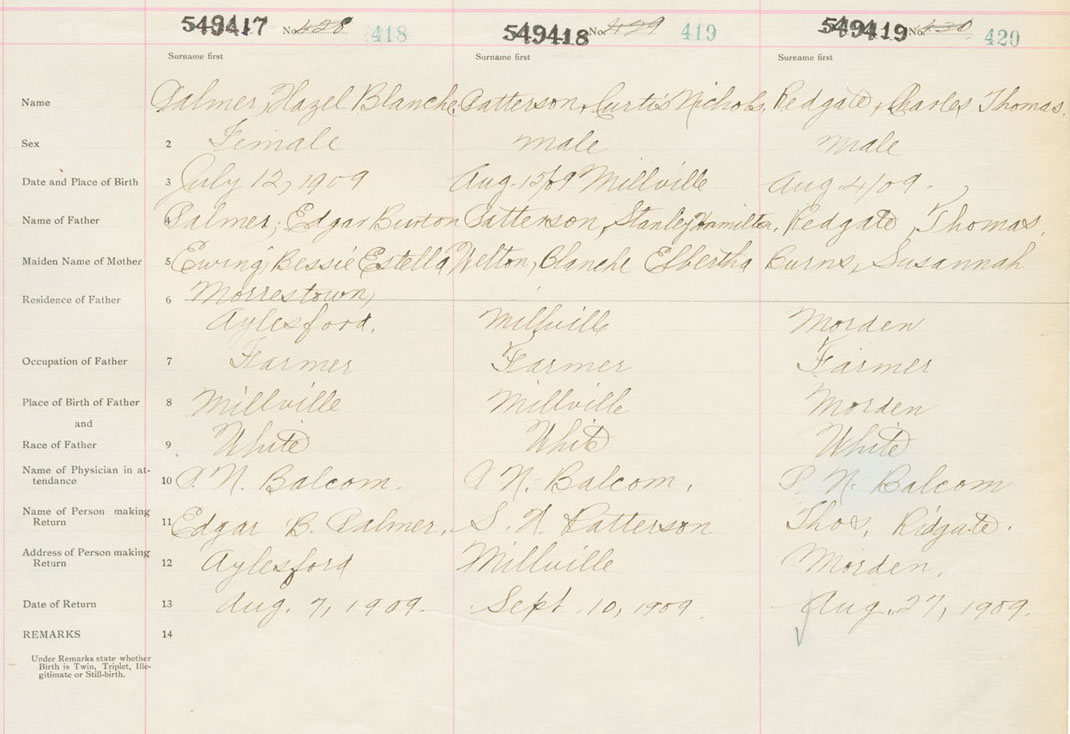 Male Birth Registration: Year: 1909 number: 54900419