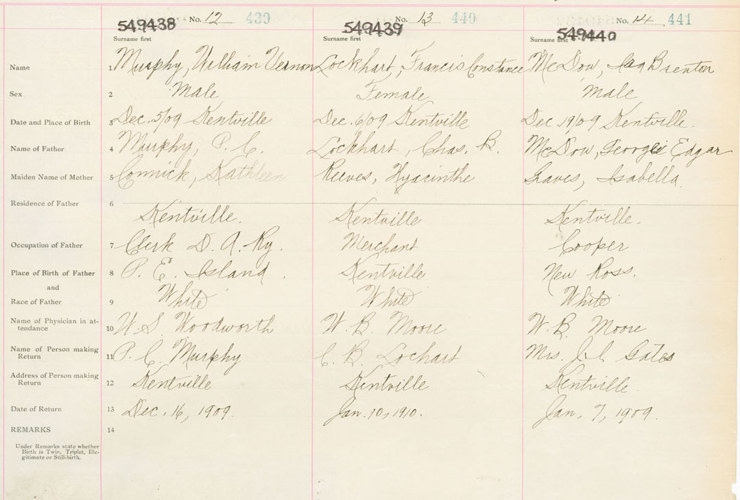Male Birth Registration: Year: 1909 number: 54900440