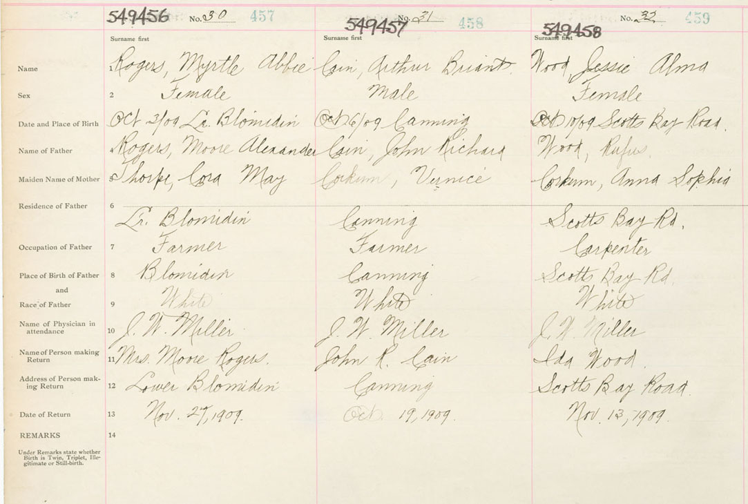 Female Birth Registration: Year: 1909 number: 54900458