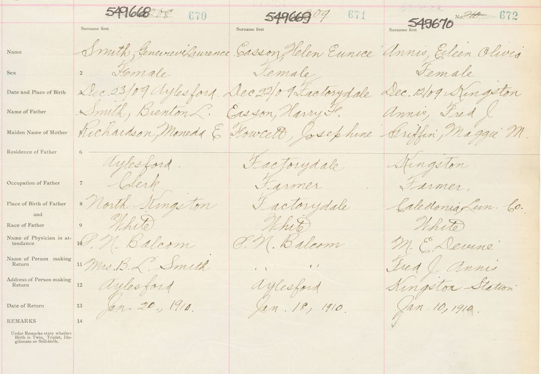 Female Birth Registration: Year: 1909 number: 54900670