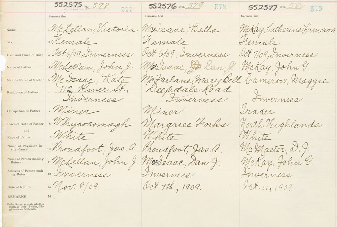 Female Birth Registration: Year: 1909 number: 55200577