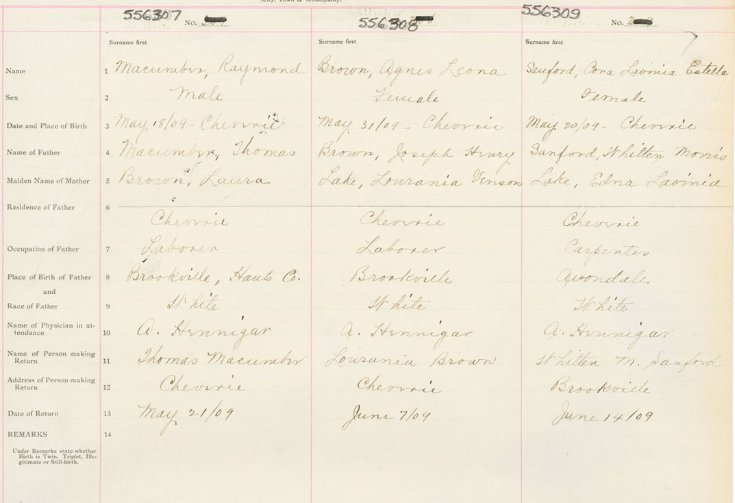 Male Birth Registration: Year: 1909 number: 55600307