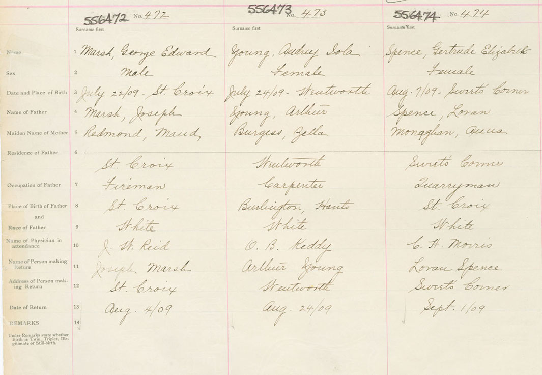 Female Birth Registration: Year: 1909 number: 55600474