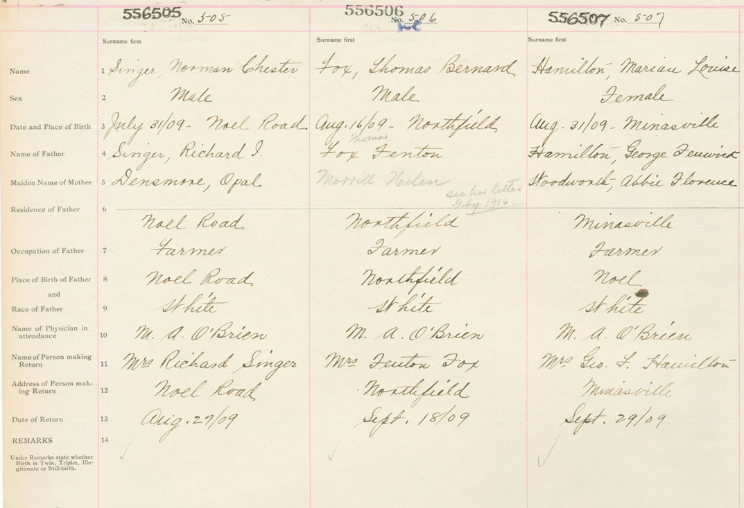 Female Birth Registration: Year: 1909 number: 55600507