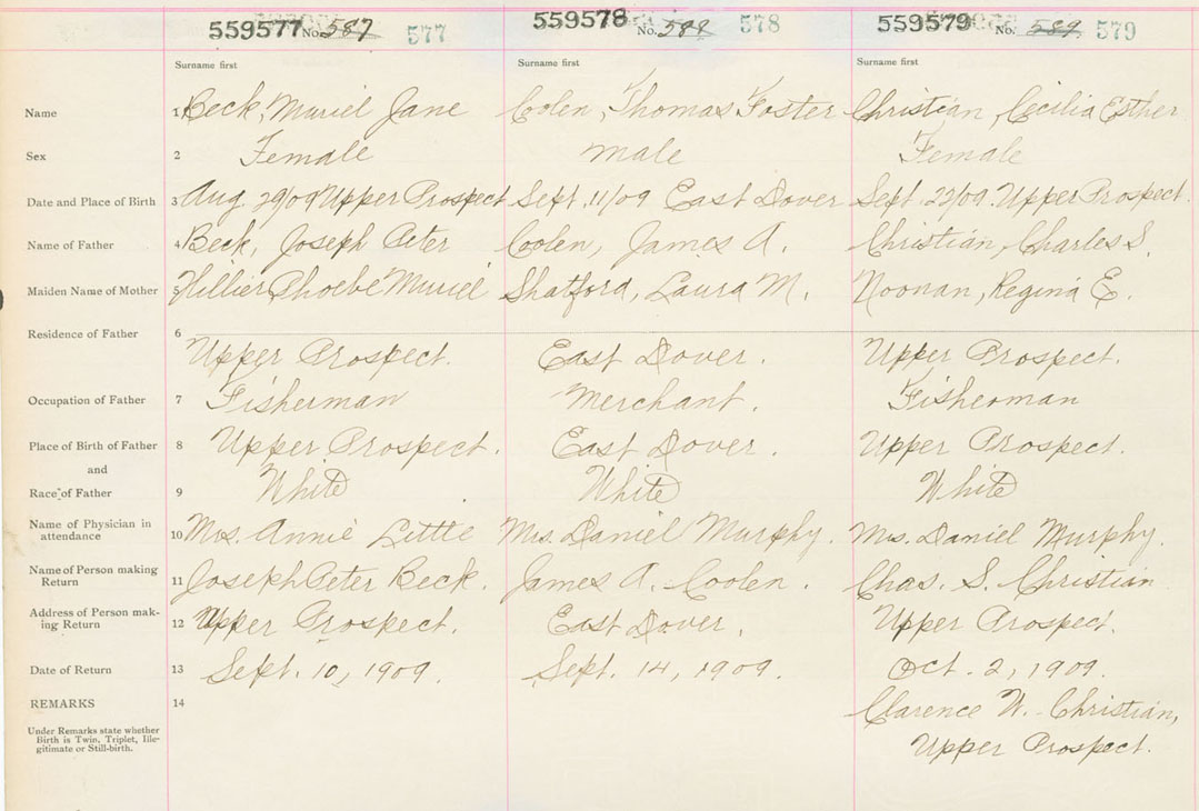 Female Birth Registration: Year: 1909 number: 55900577