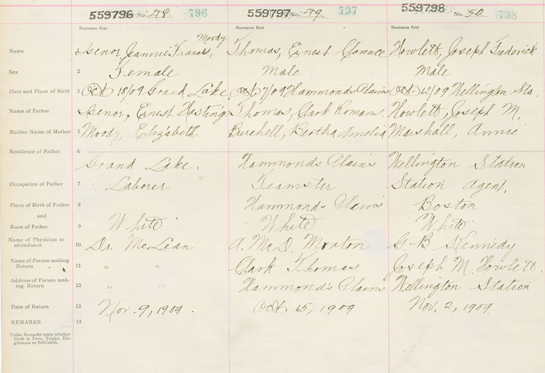 Female Birth Registration: Year: 1909 number: 55900796