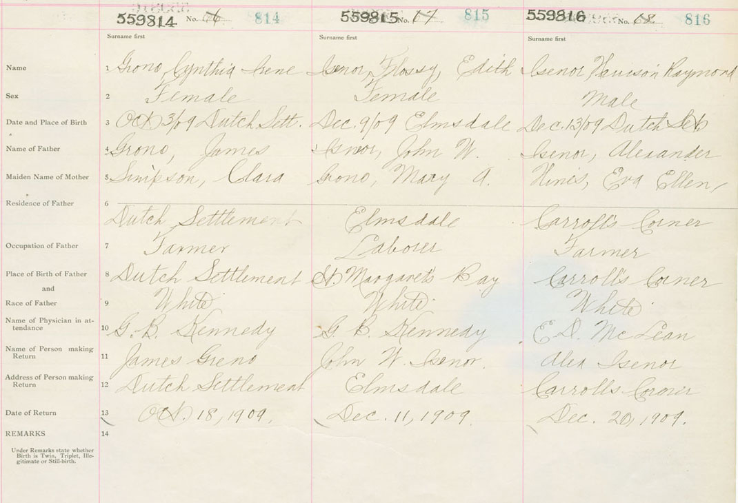 Female Birth Registration: Year: 1909 number: 55900814