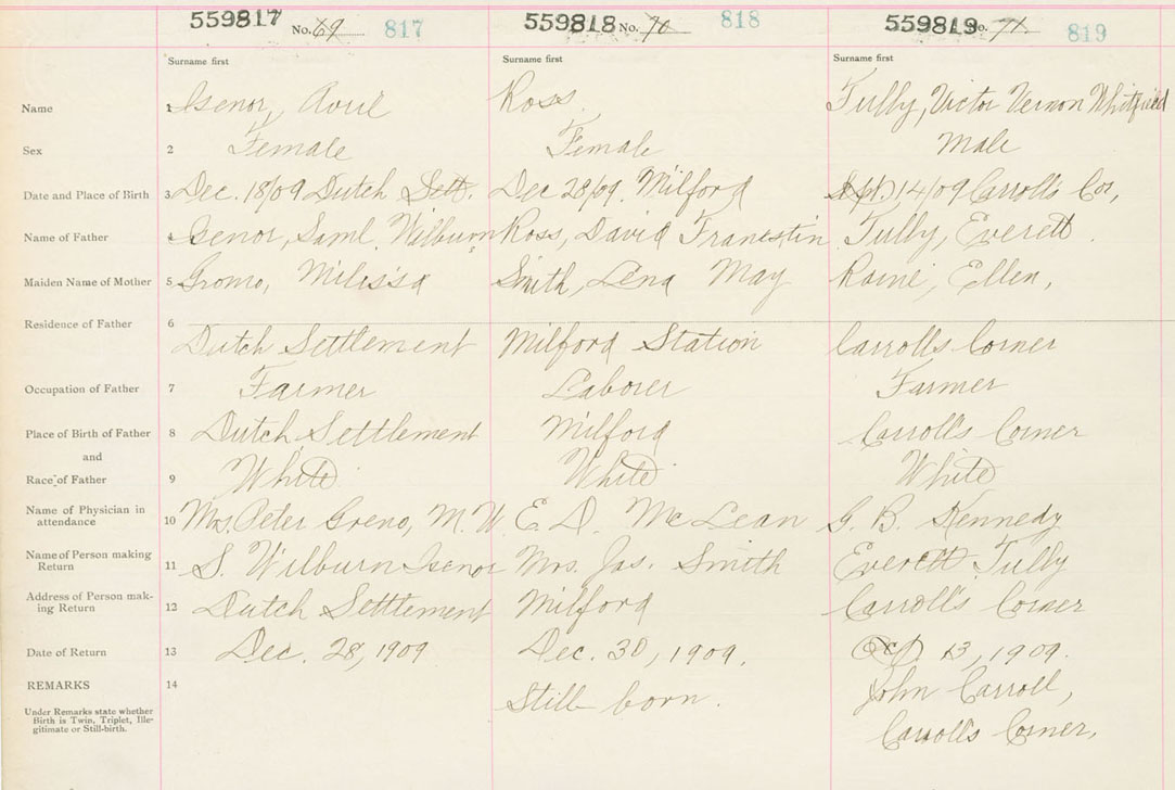 Female Birth Registration: Year: 1909 number: 55900817