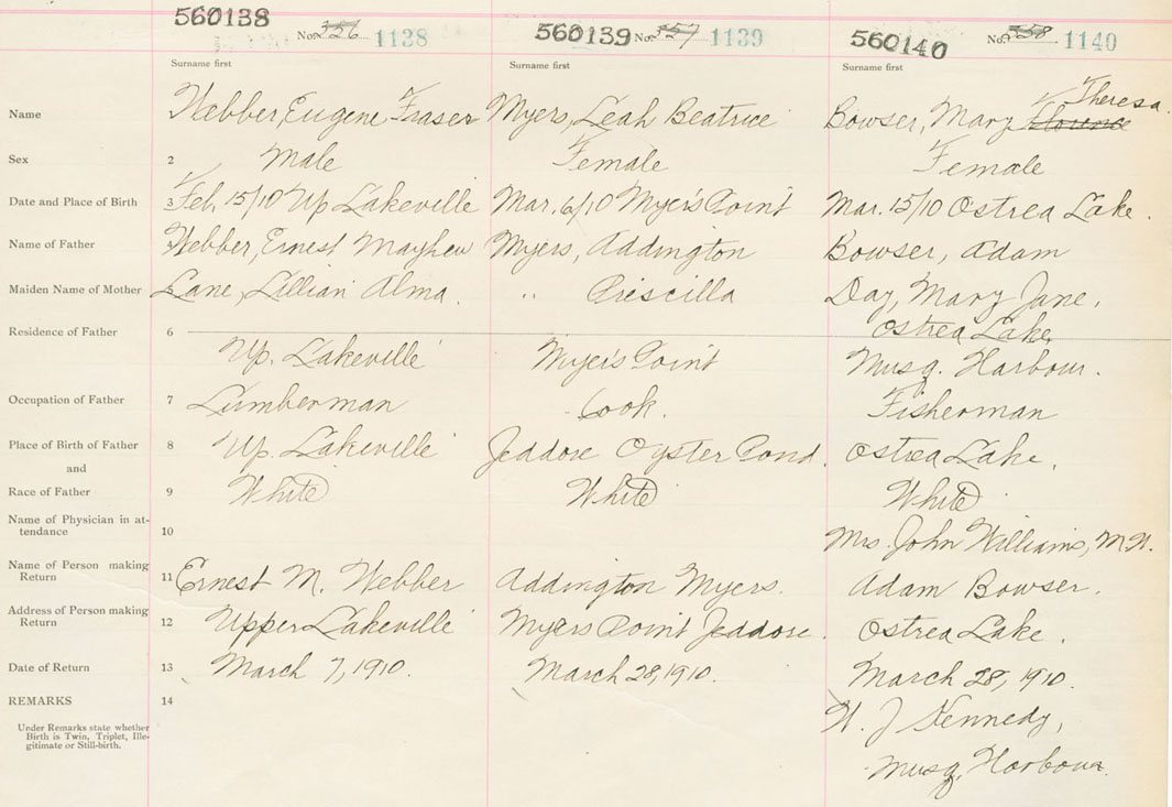 Female Birth Registration: Year: 1910 number: 56000140