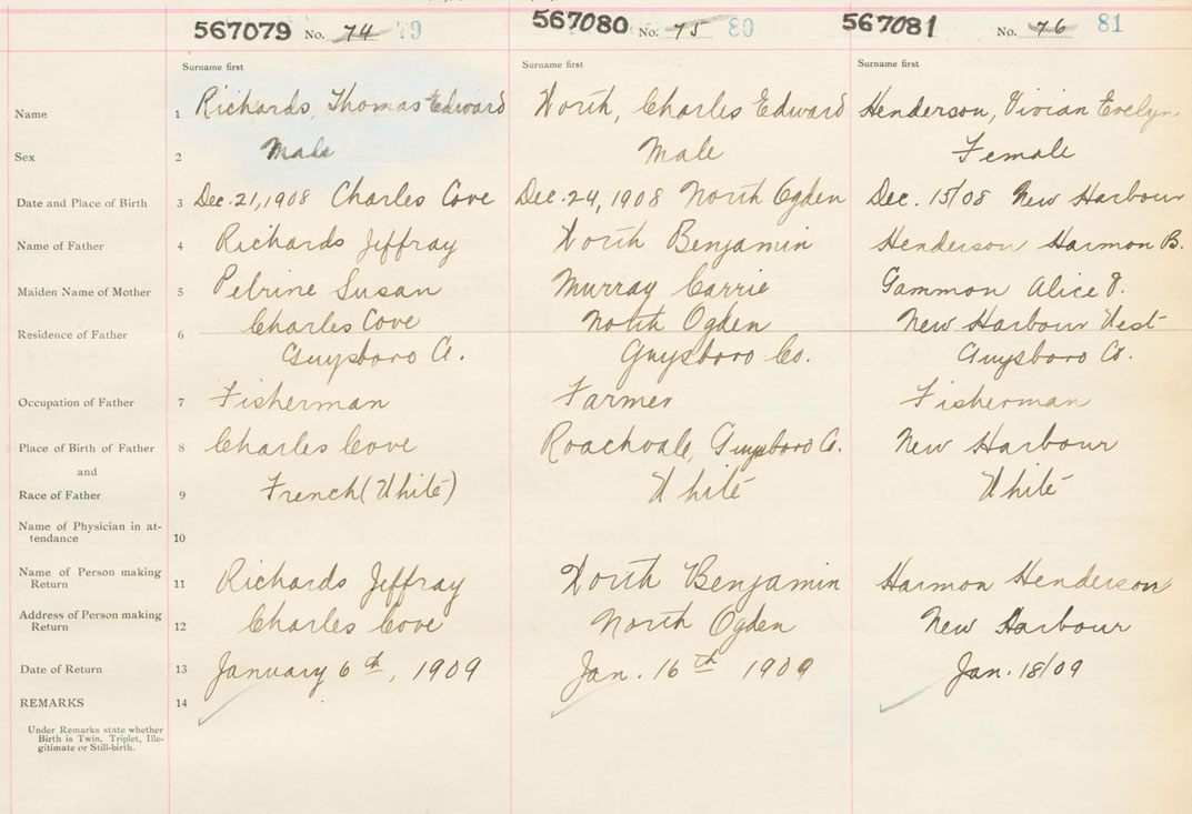Male Birth Registration: Year: 1909 number: 56700079