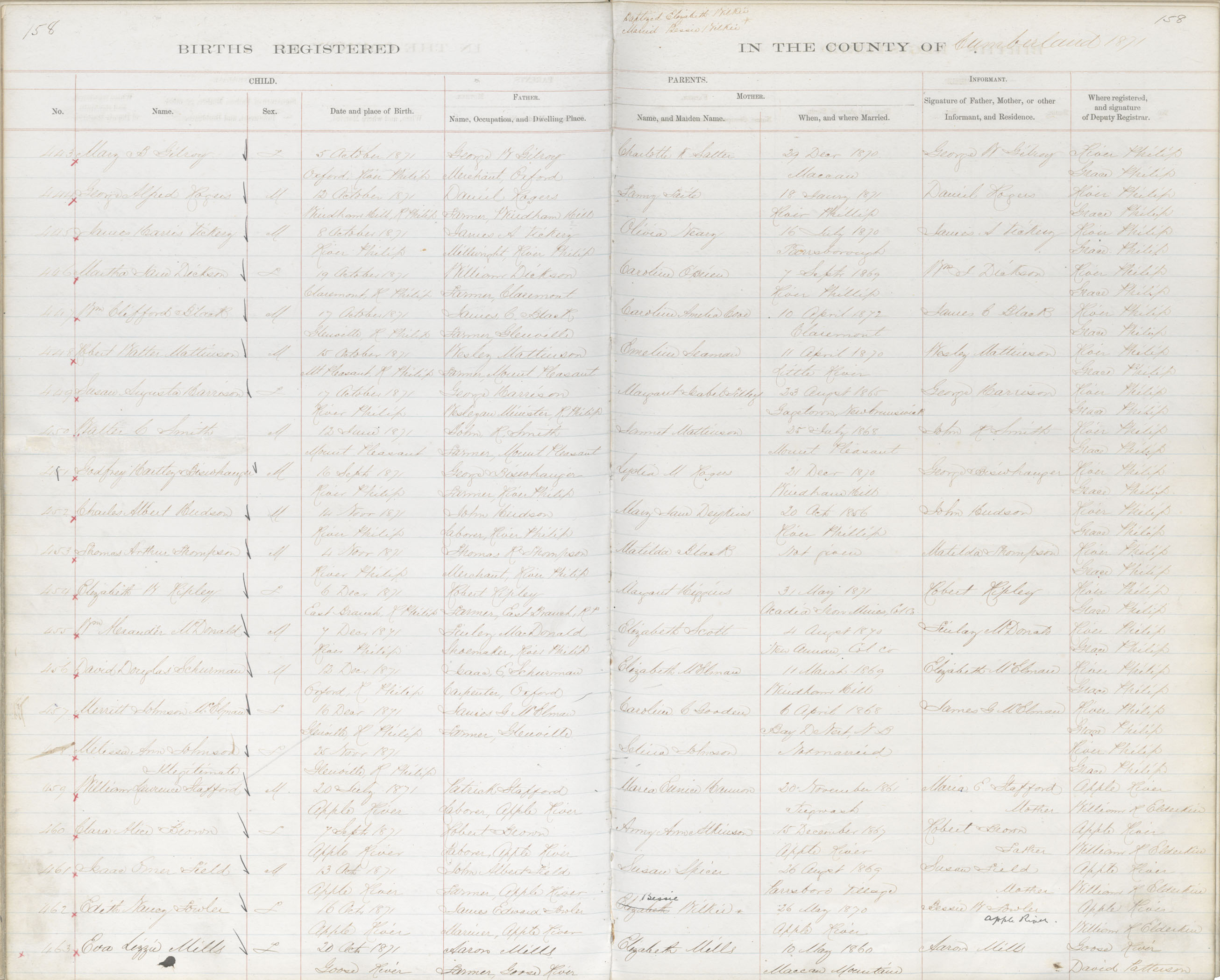 Birth Registration: Year: 1871 book: 1805 page: 158 number: 443
