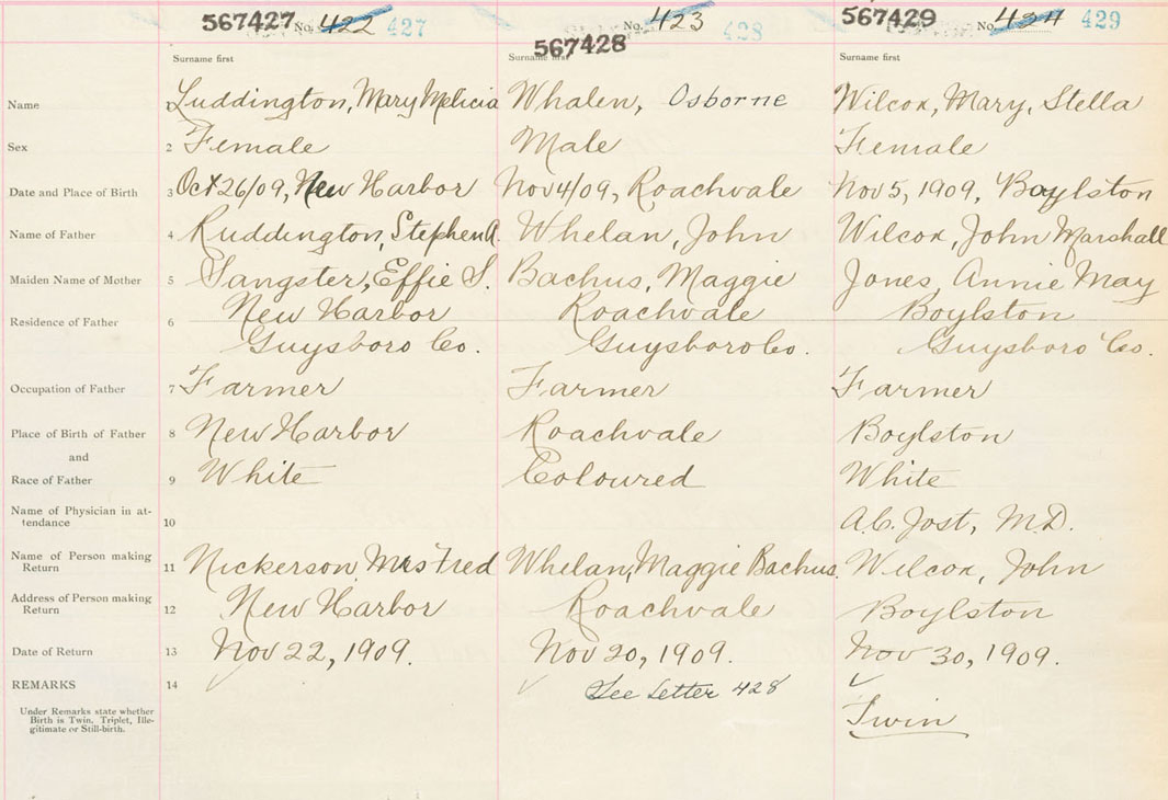 Female Birth Registration: Year: 1909 number: 56700429