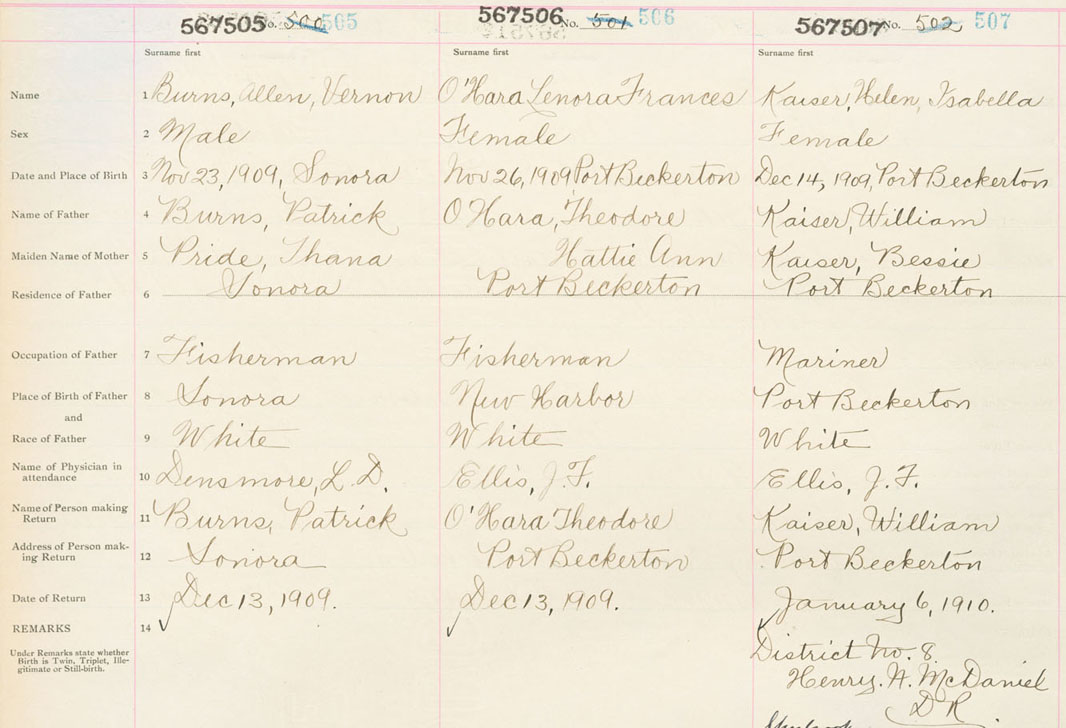 Female Birth Registration: Year: 1909 number: 56700507