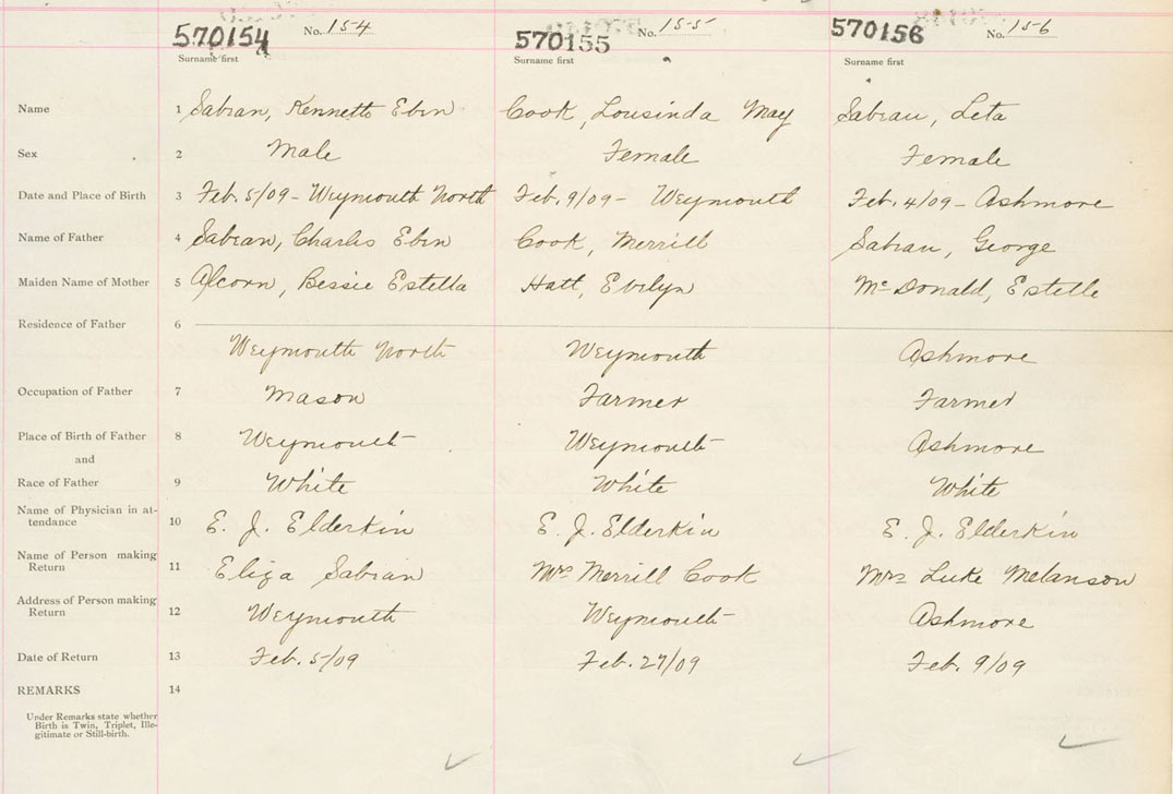 Male Birth Registration: Year: 1909 number: 57000154