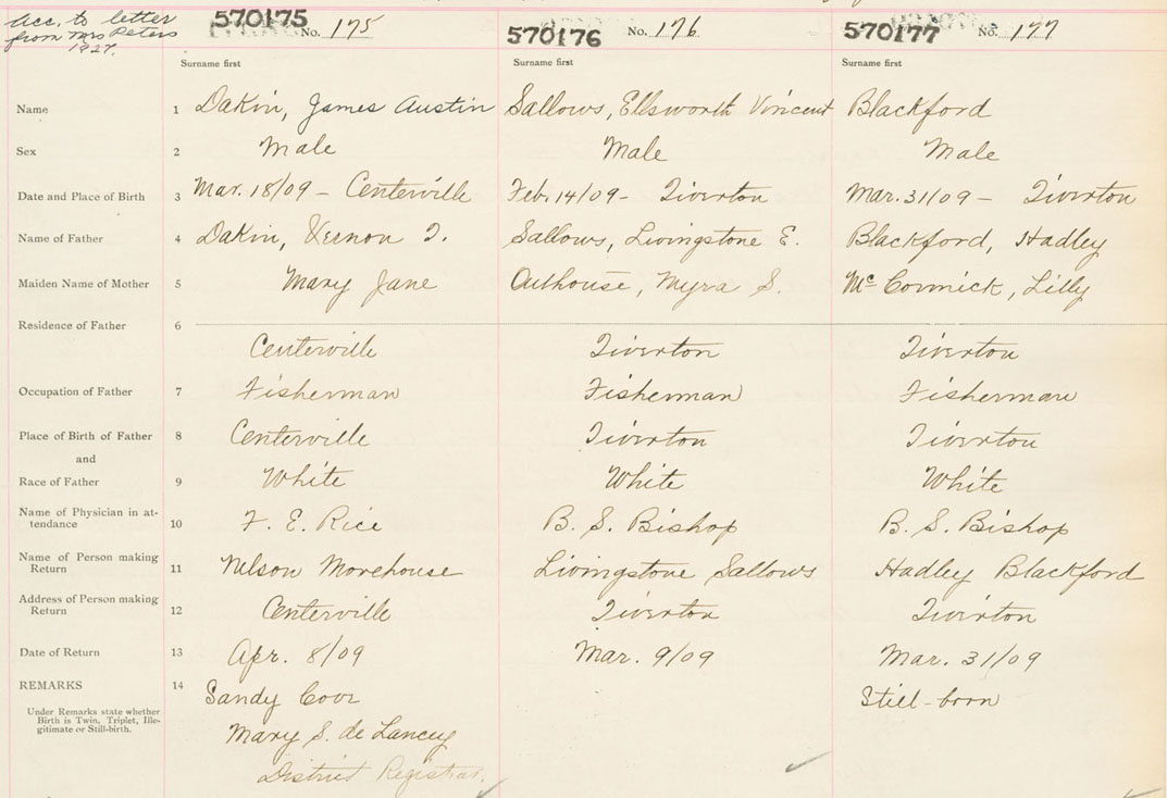 Male Birth Registration: Year: 1909 number: 57000175