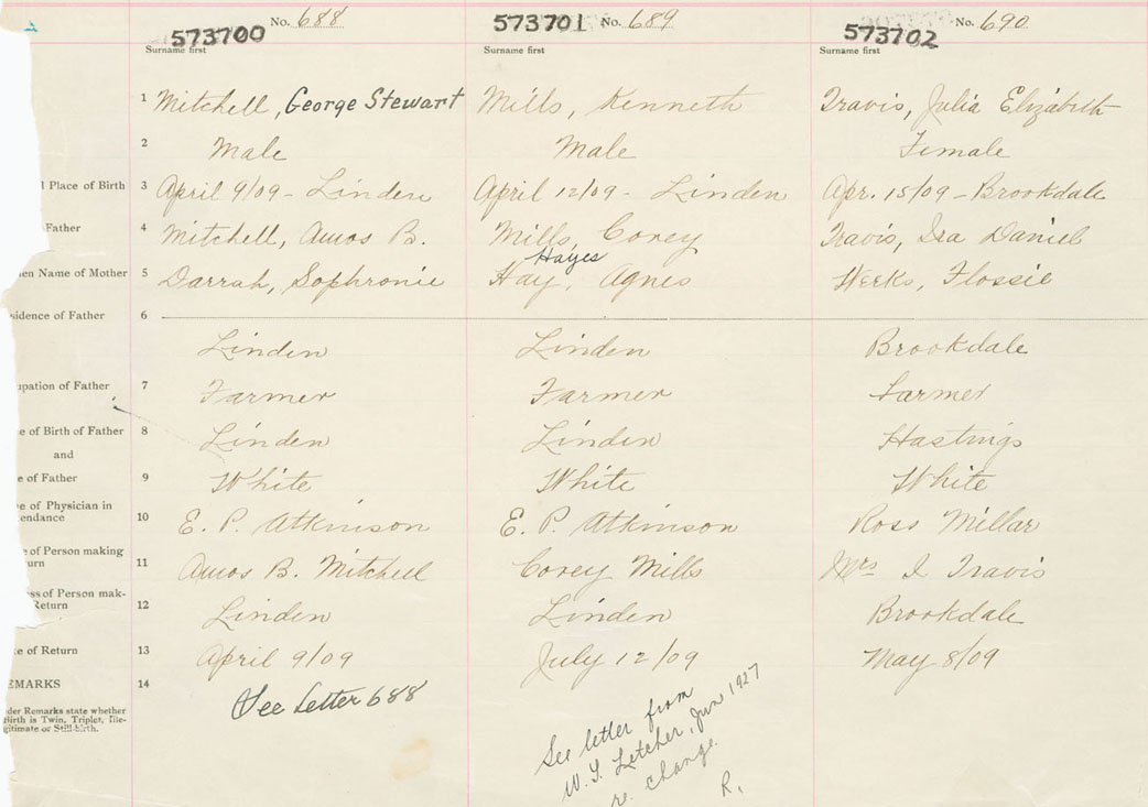 Female Birth Registration: Year: 1909 number: 57300702