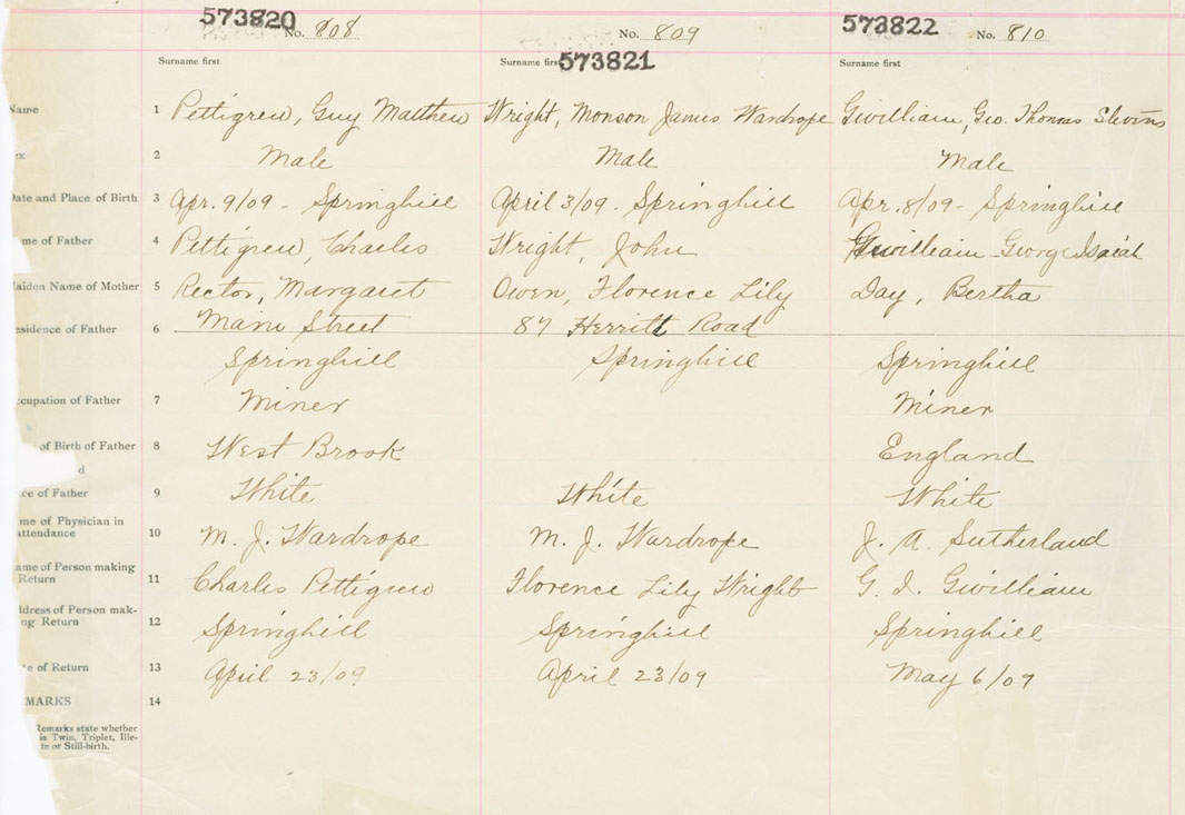 Male Birth Registration: Year: 1909 number: 57300822