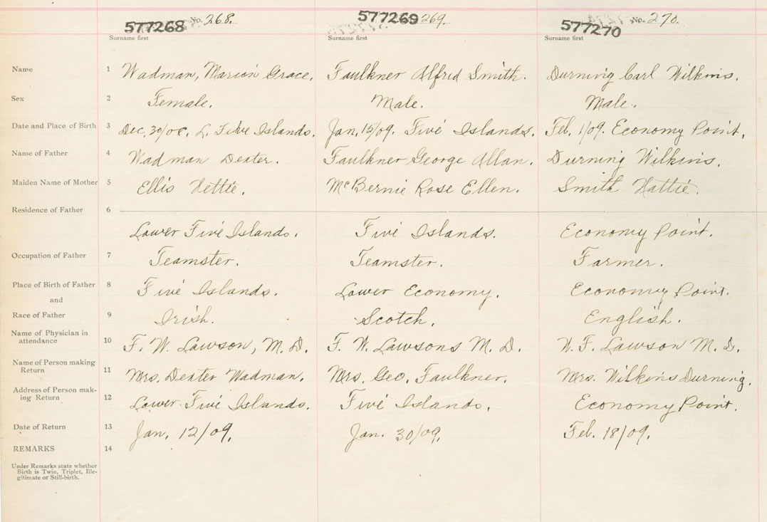 Male Birth Registration: Year: 1909 number: 57700270