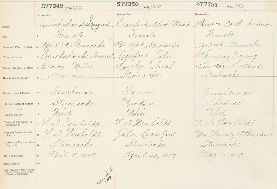 Female Birth Registration: Year: 1909 number: 57700351