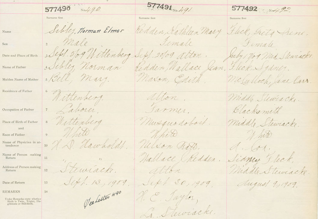 Male Birth Registration: Year: 1909 number: 57700490