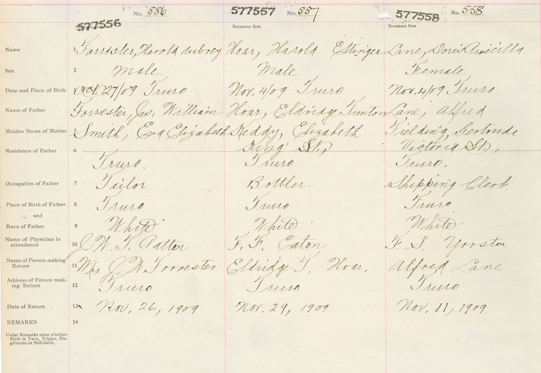 Male Birth Registration: Year: 1909 number: 57700556