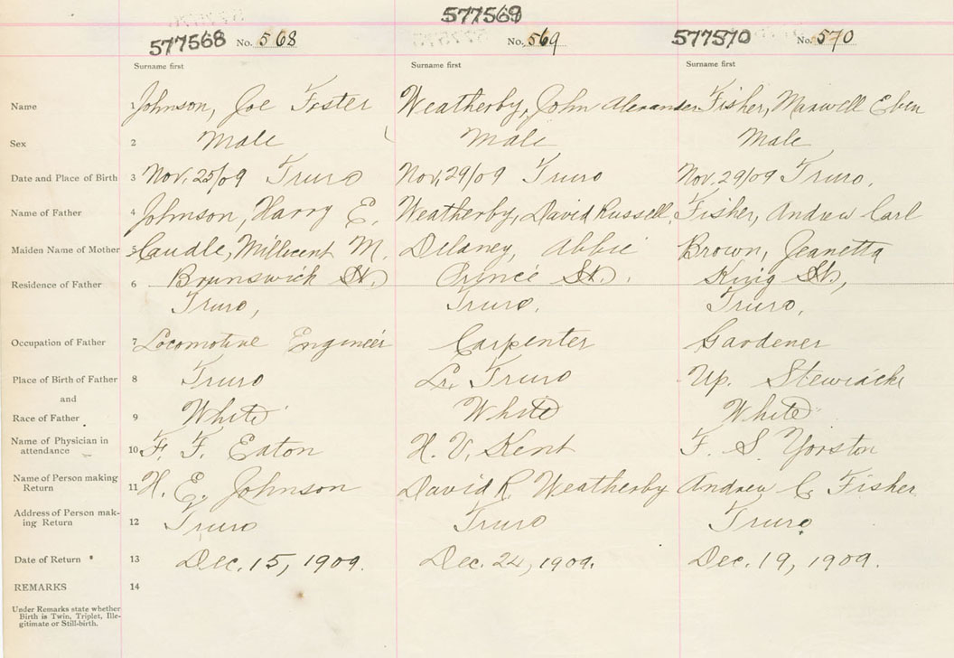 Male Birth Registration: Year: 1909 number: 57700568