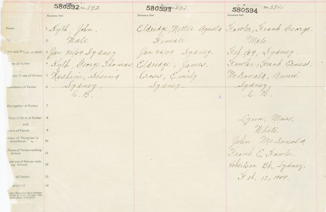 Male Birth Registration: Year: 1909 number: 58000594