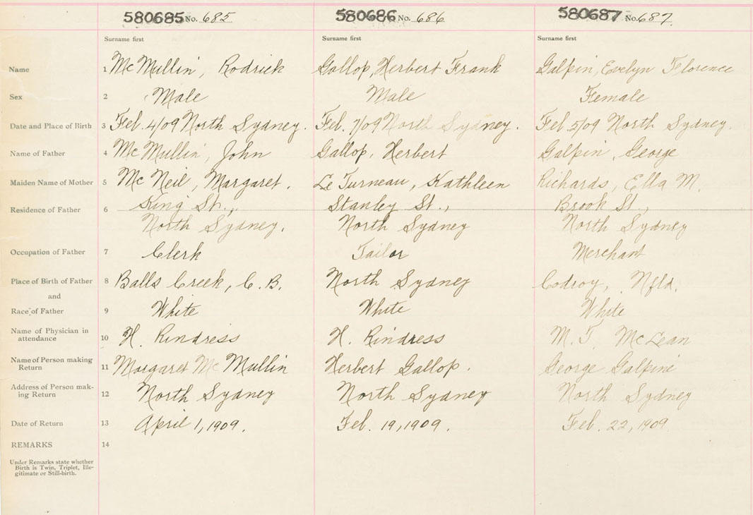 Female Birth Registration: Year: 1909 number: 58000687