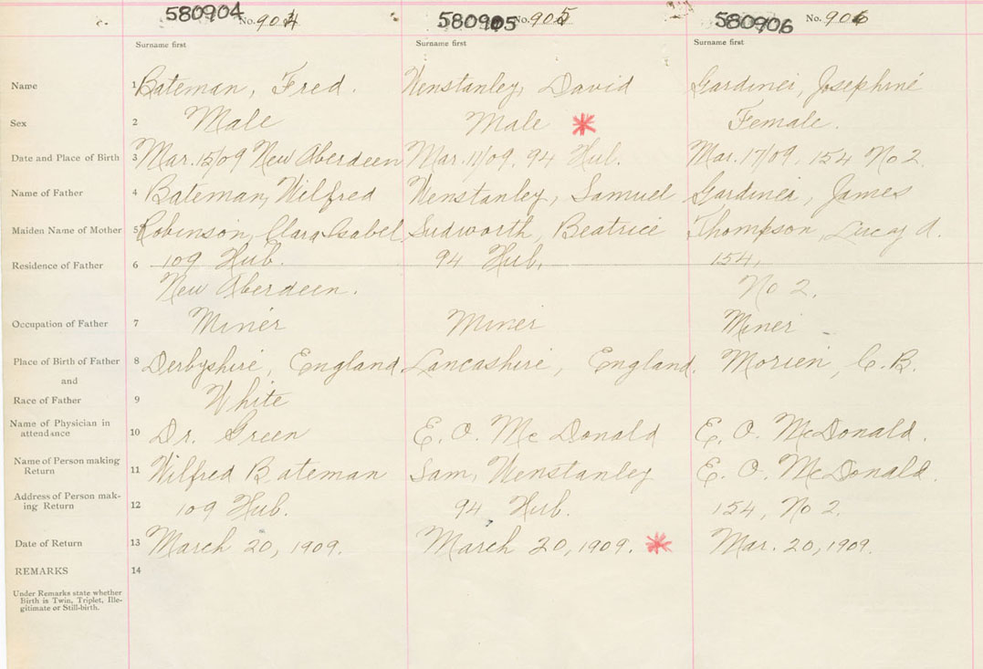Female Birth Registration: Year: 1909 number: 58000906